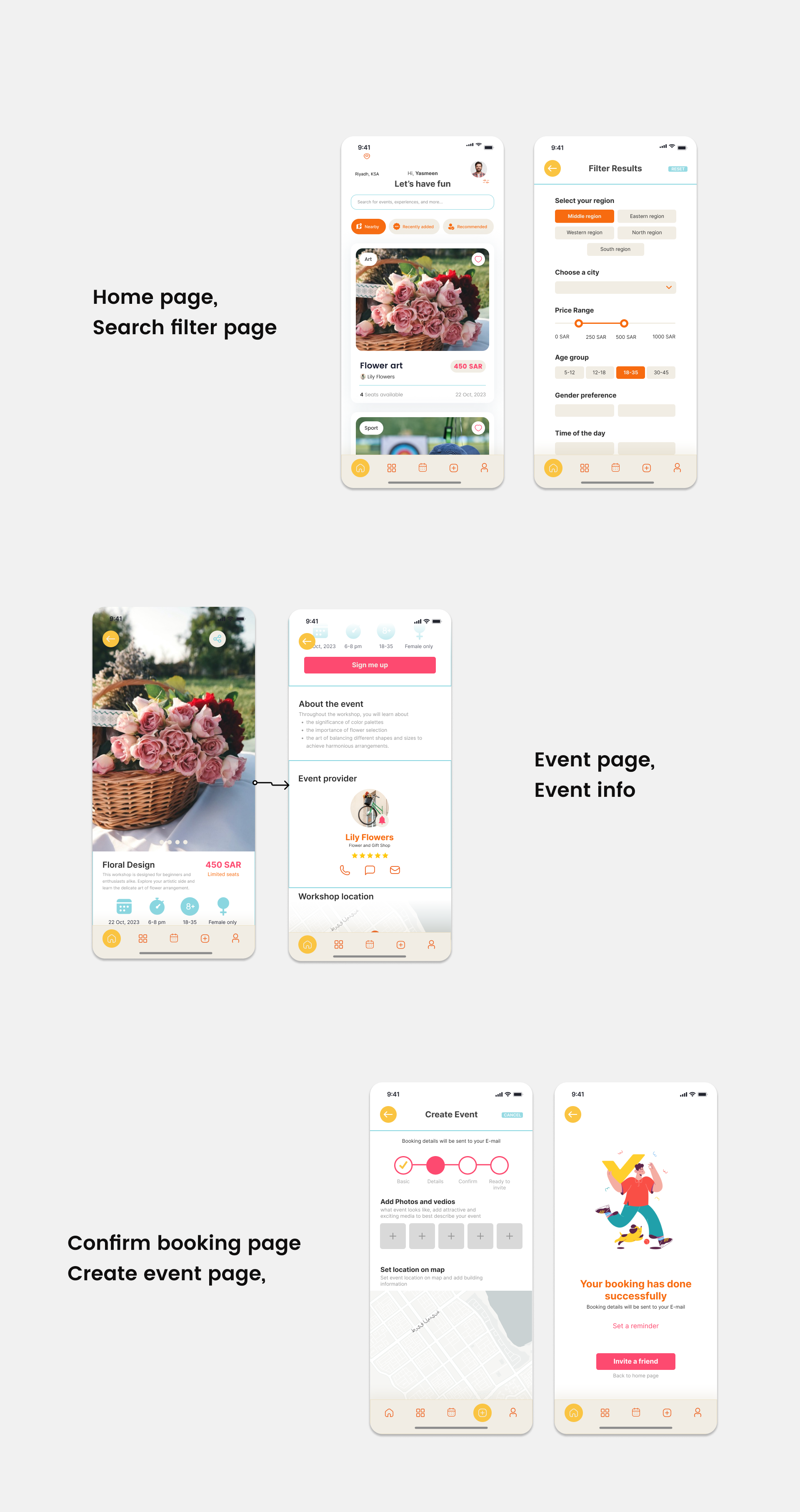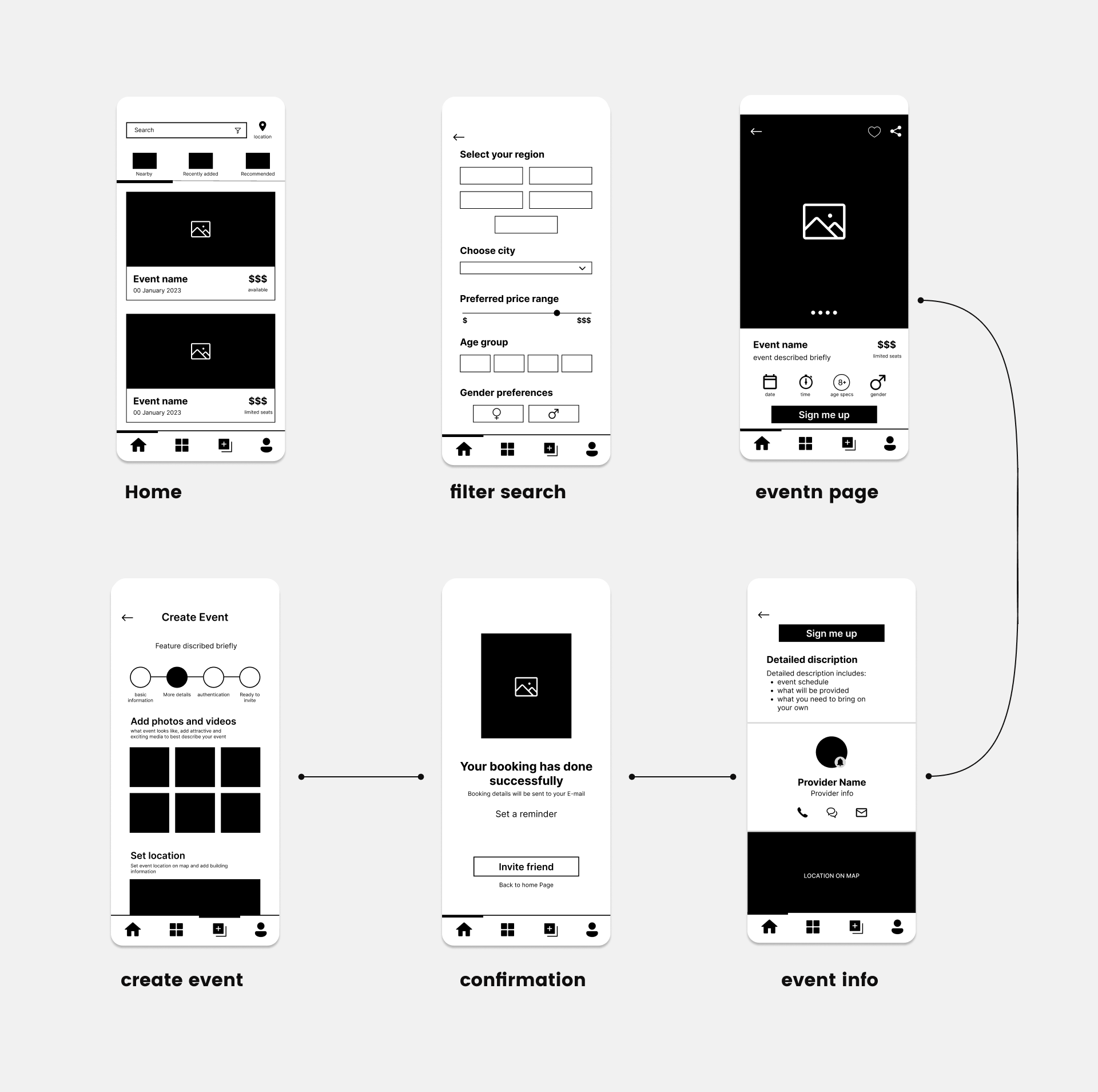 designing mobile application, with ability to search and look for events and experiences, providing the ability to create your own event and invite people, with identity authentication for better security.